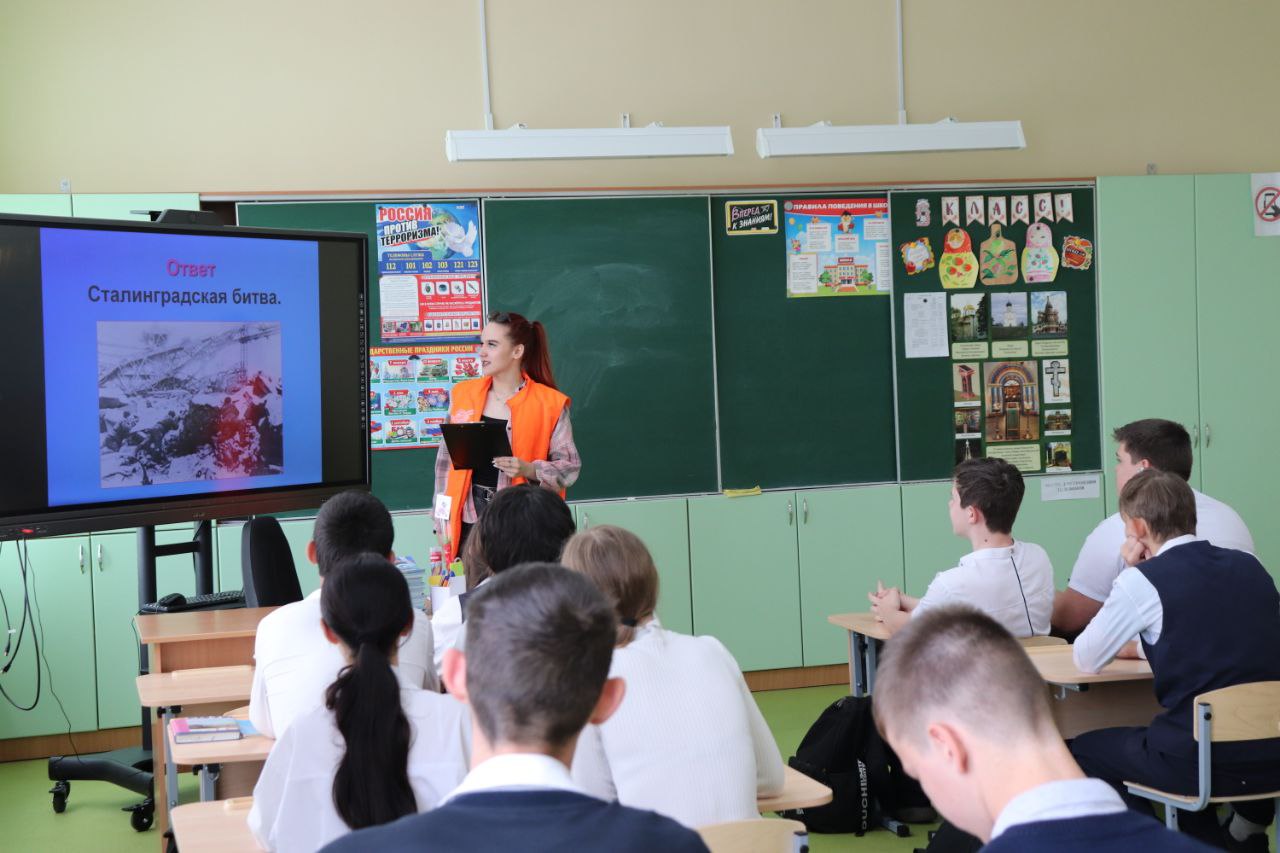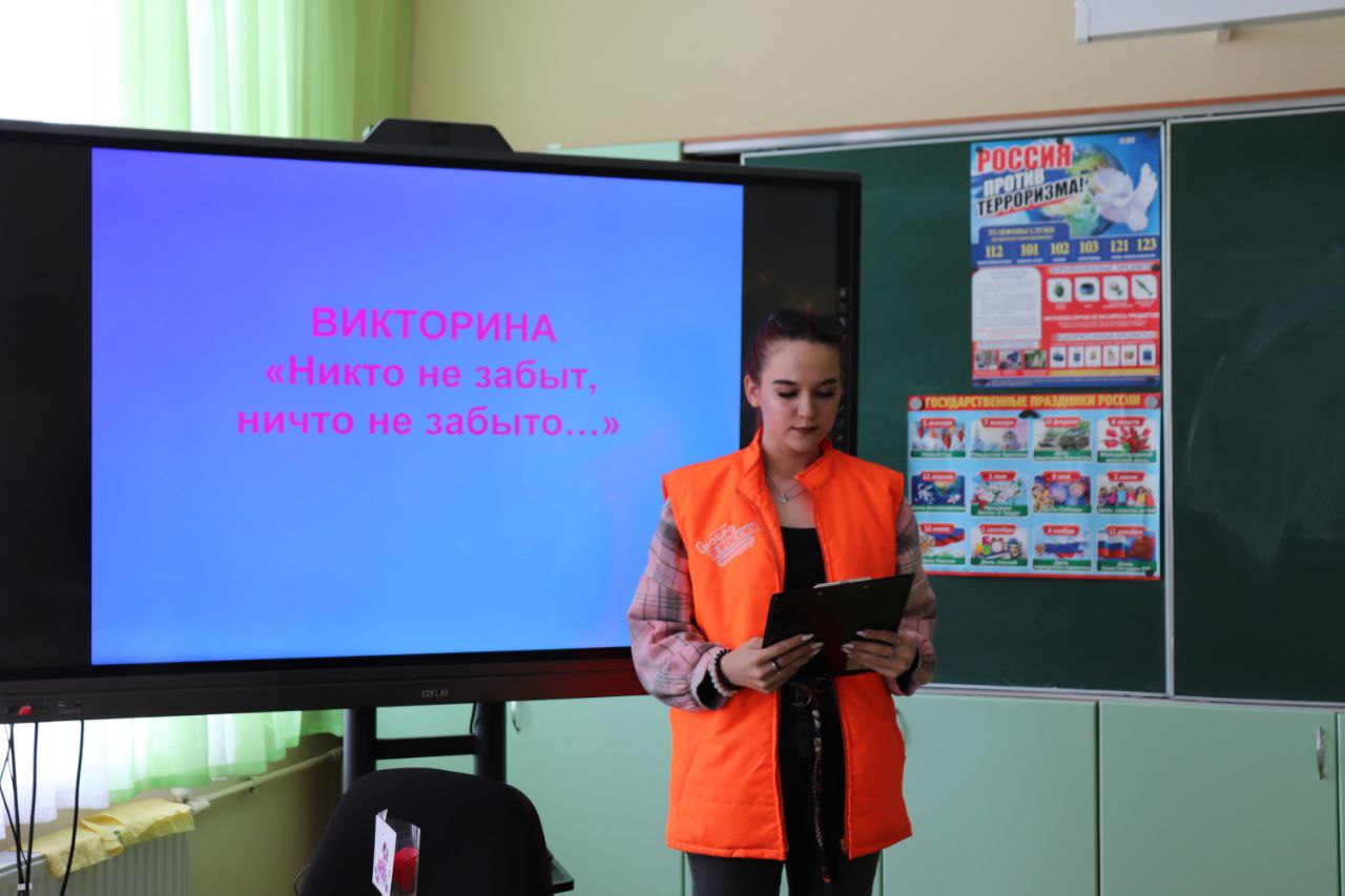 Специалист молодежного центра, представитель штаба #МыВместе провела беседу и памятную викторину по инициативе добровольцев и ученического совета, на знание важных событий и памятных дат.