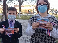 🖇 Участники акции раздавали жителям Новокубанского района листовки и ленты-триколор.