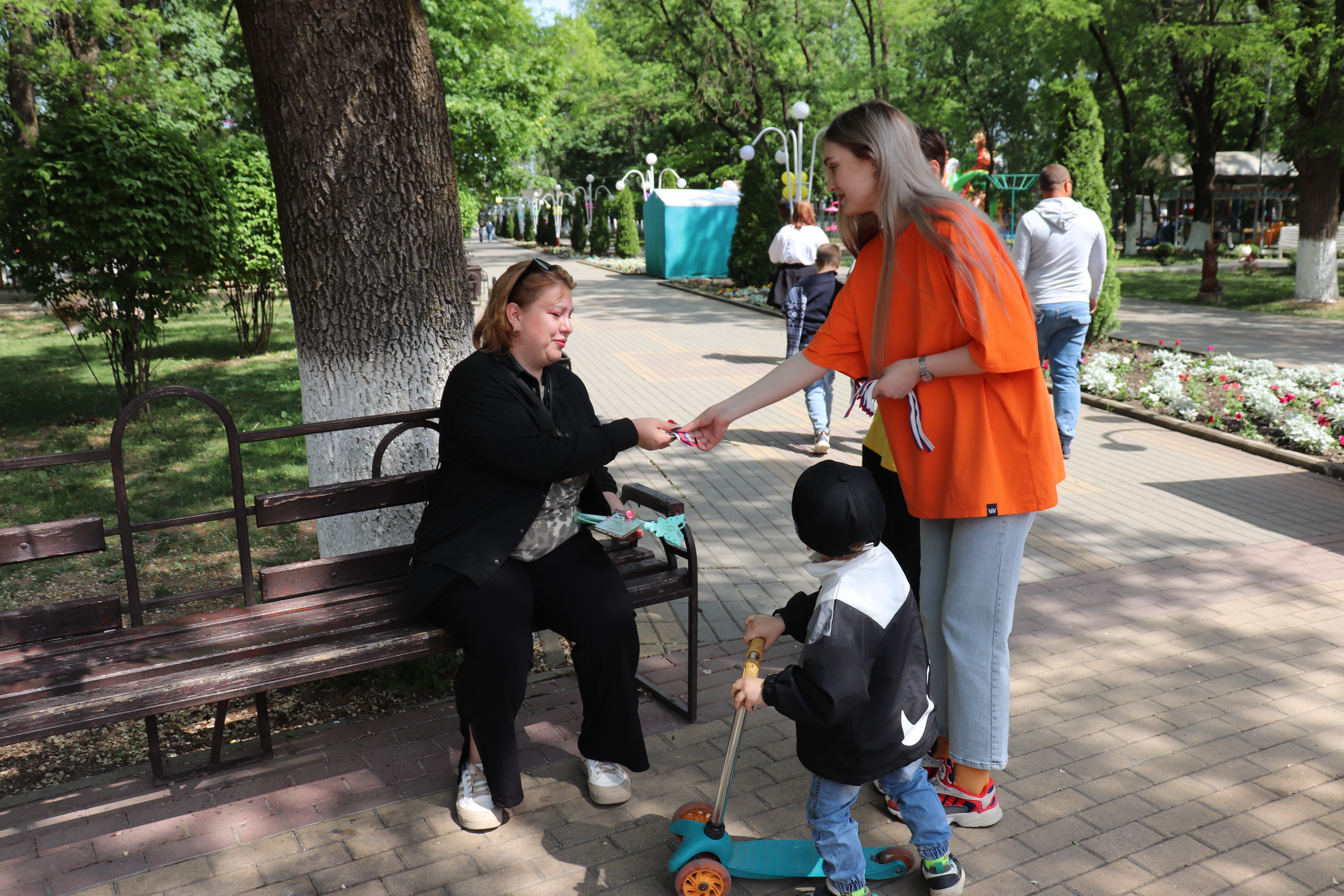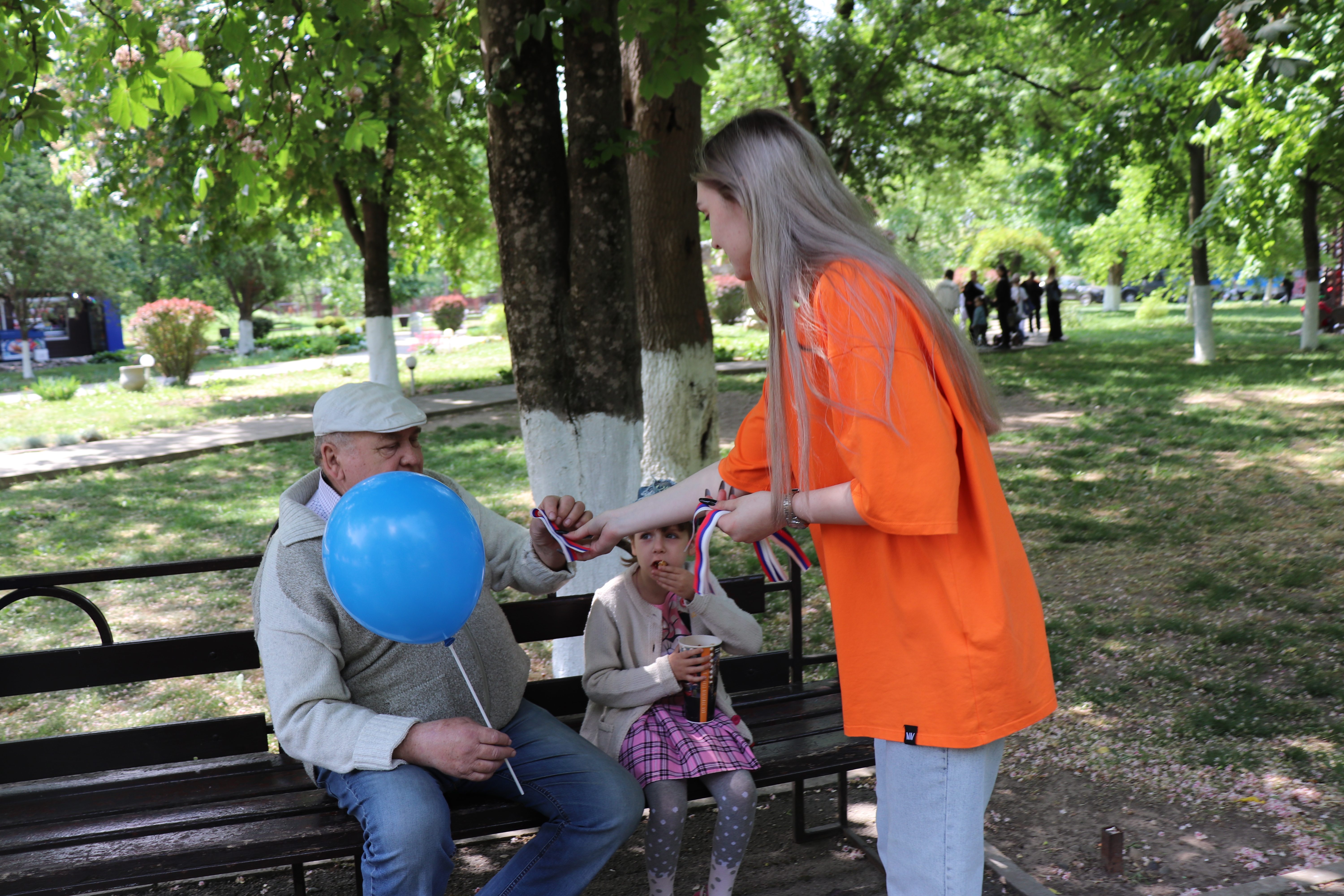 В рамках празднования "Дня весны и труда" волонтеры Новокубанского район организовали акцию по распространению ленточек в цветах флага России, основная цель которой показать единение населения