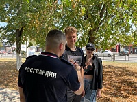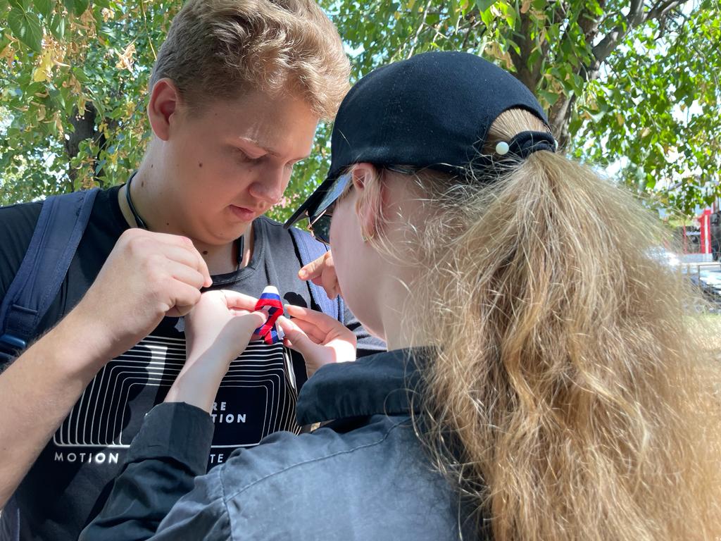 Представитель Росгвардии совместно со специалистом МКУ «НМЦ» раздали символику в цветах государственного флага Российской Федерации - флажки и ленточки.