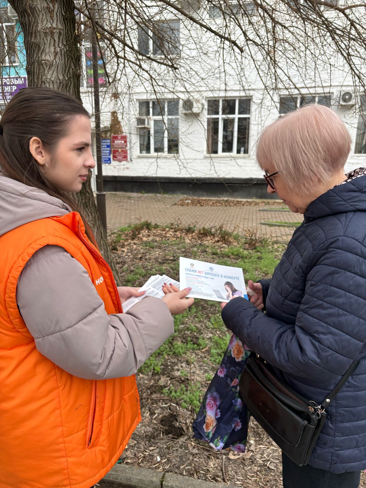 на территории города Новокубанск прошла акция по трудовой финансовой грамотности "Скажи нет зарплате в конвертах" на которой были разданы информационные листовки и рассказана полезная информация