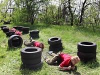 - Кочки( преодоление командой препятствия через покрышки);