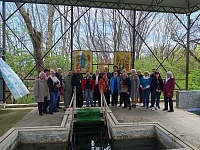 Молодёжная делегация совместно с членами организации "Всероссийское общество слепых", а так же с членами организации "Совет ветеранов" и серебряными волонтерами посетили святой источник в станице Бесскорбная