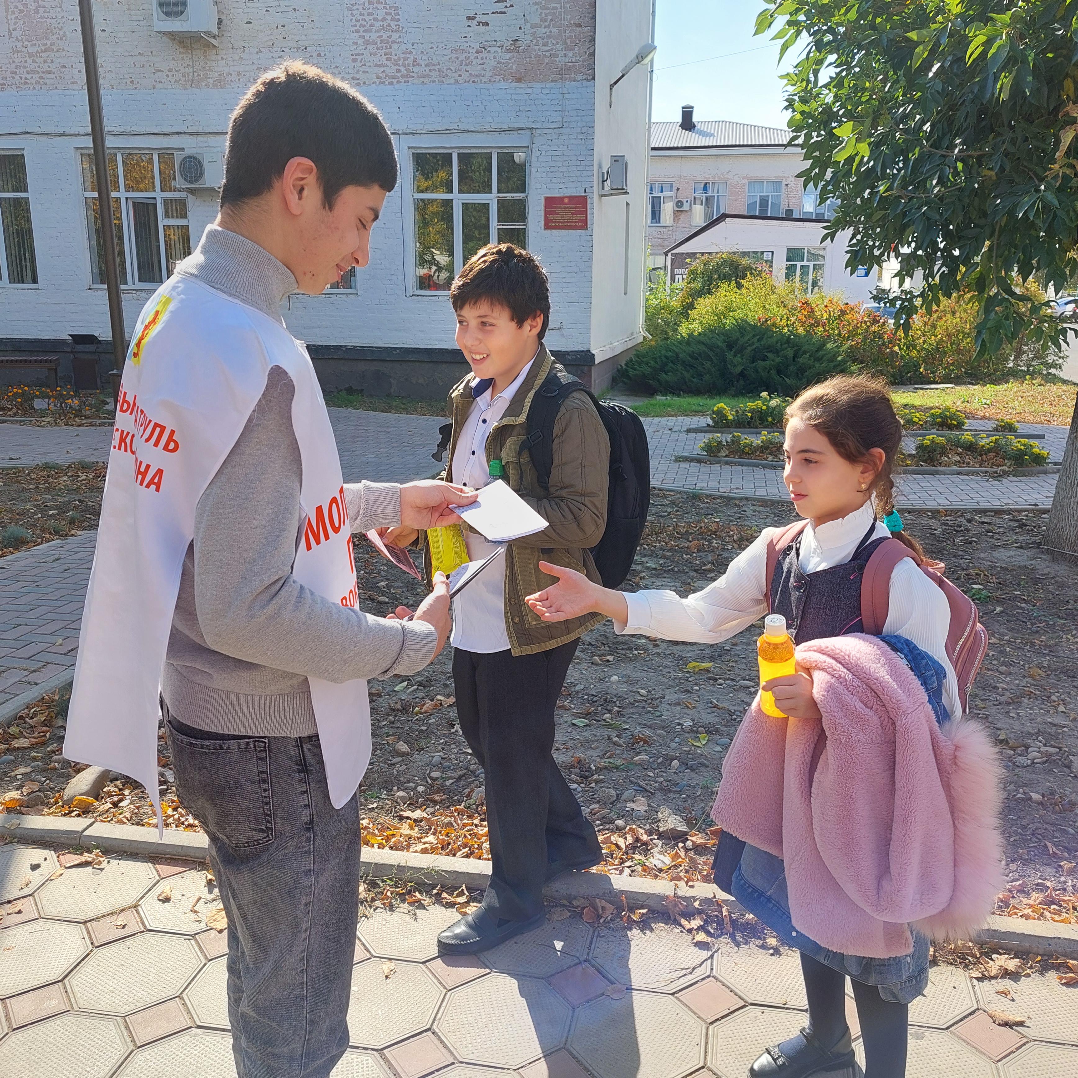 Для предотвращения несчастных случаев на дорогах нашего района представители общественного объединения правоохранительной направленности «Молодежный патруль» провели информационную акцию «Грамотный пешеход» с раздачей листовок, в которых напоминали о необходимости соблюдать правила дорожного движения пешеходам.
