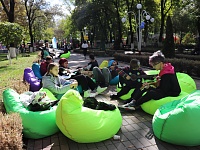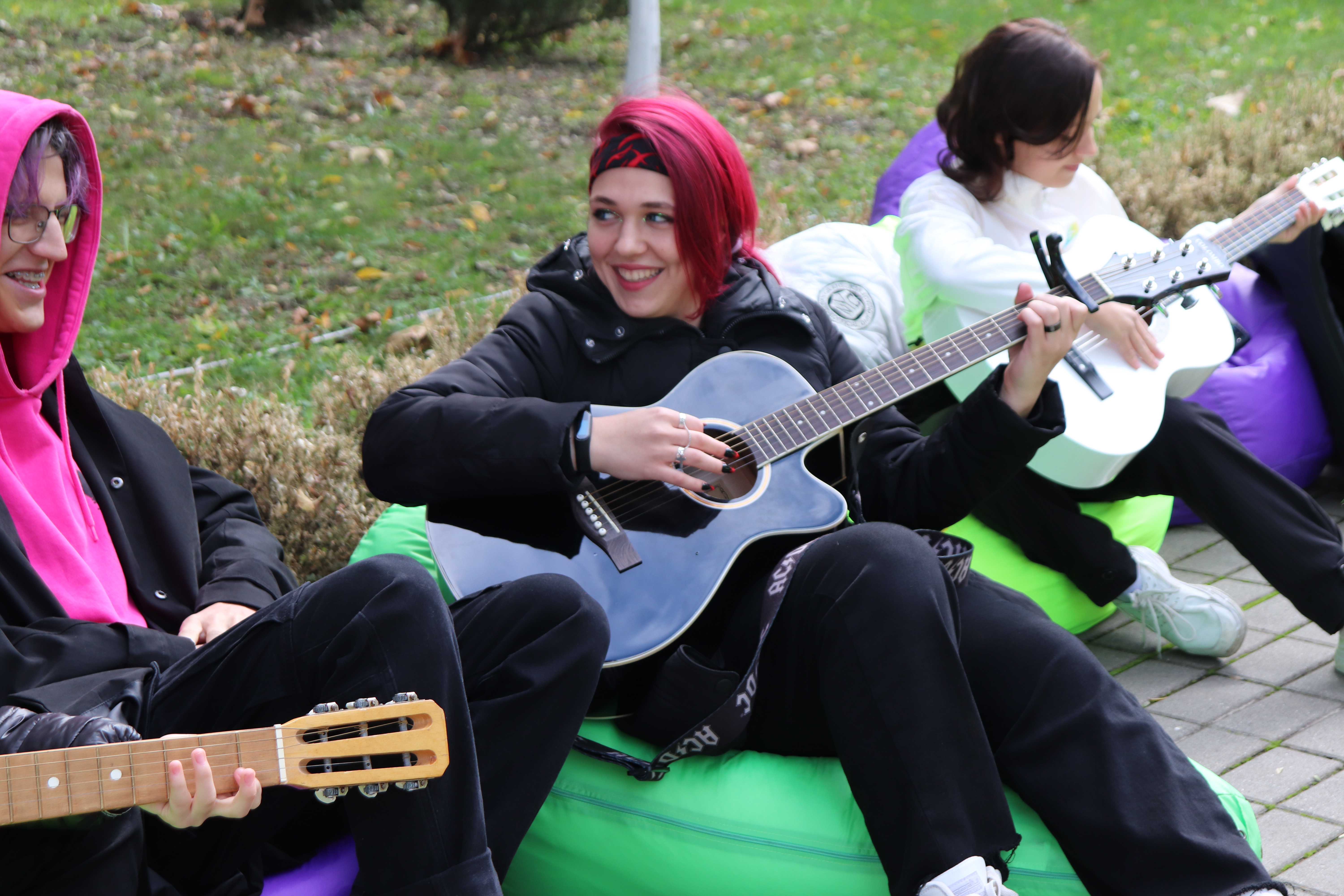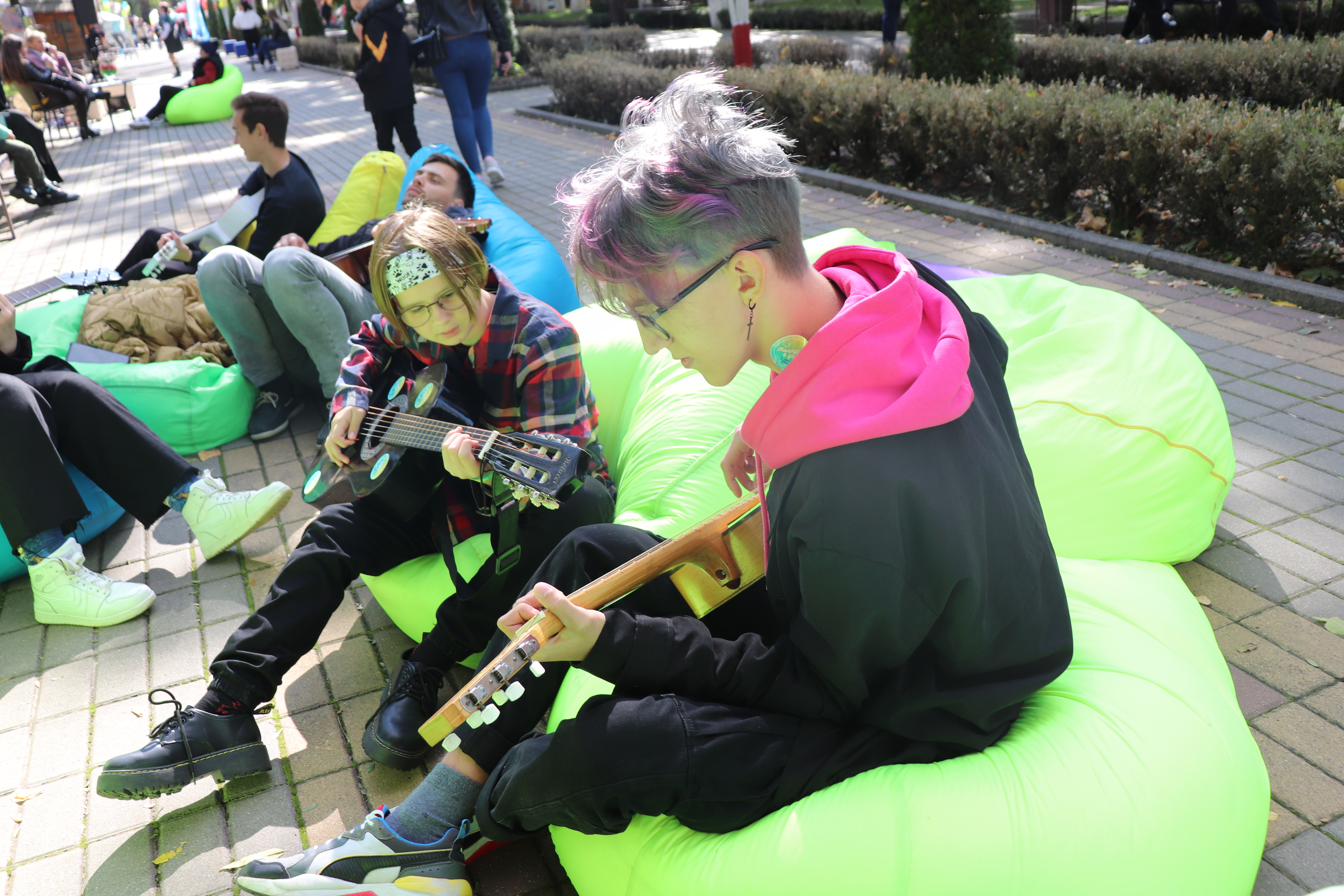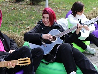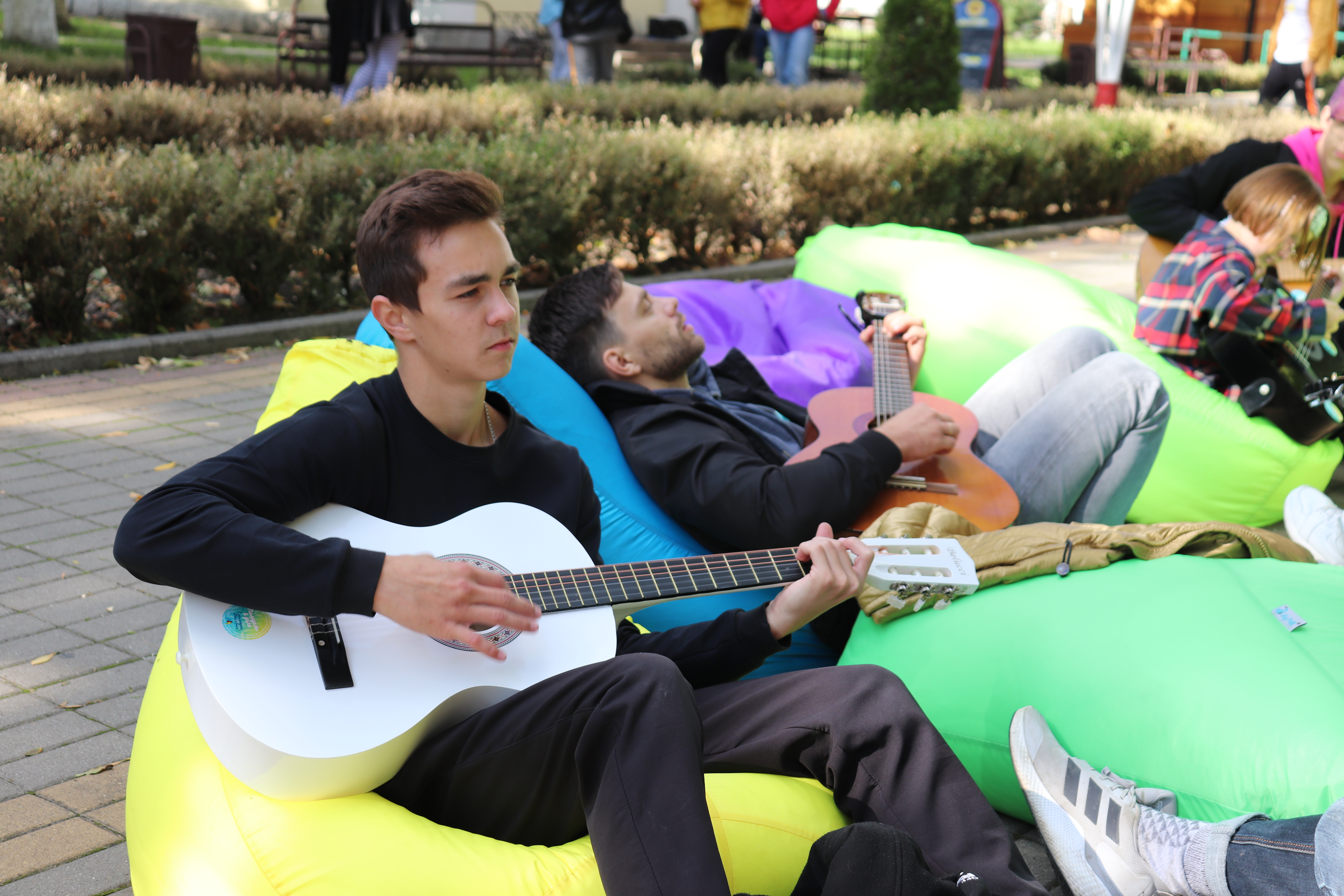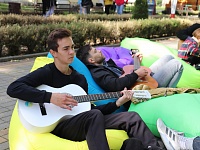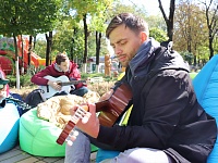 Волонтеры предлагали всем желающим попробовать научится играть на гитаре🎸 или отдохнуть в зоне отдыха наслаждаясь праздничной обстановкой и теплым осенним солнышком☀