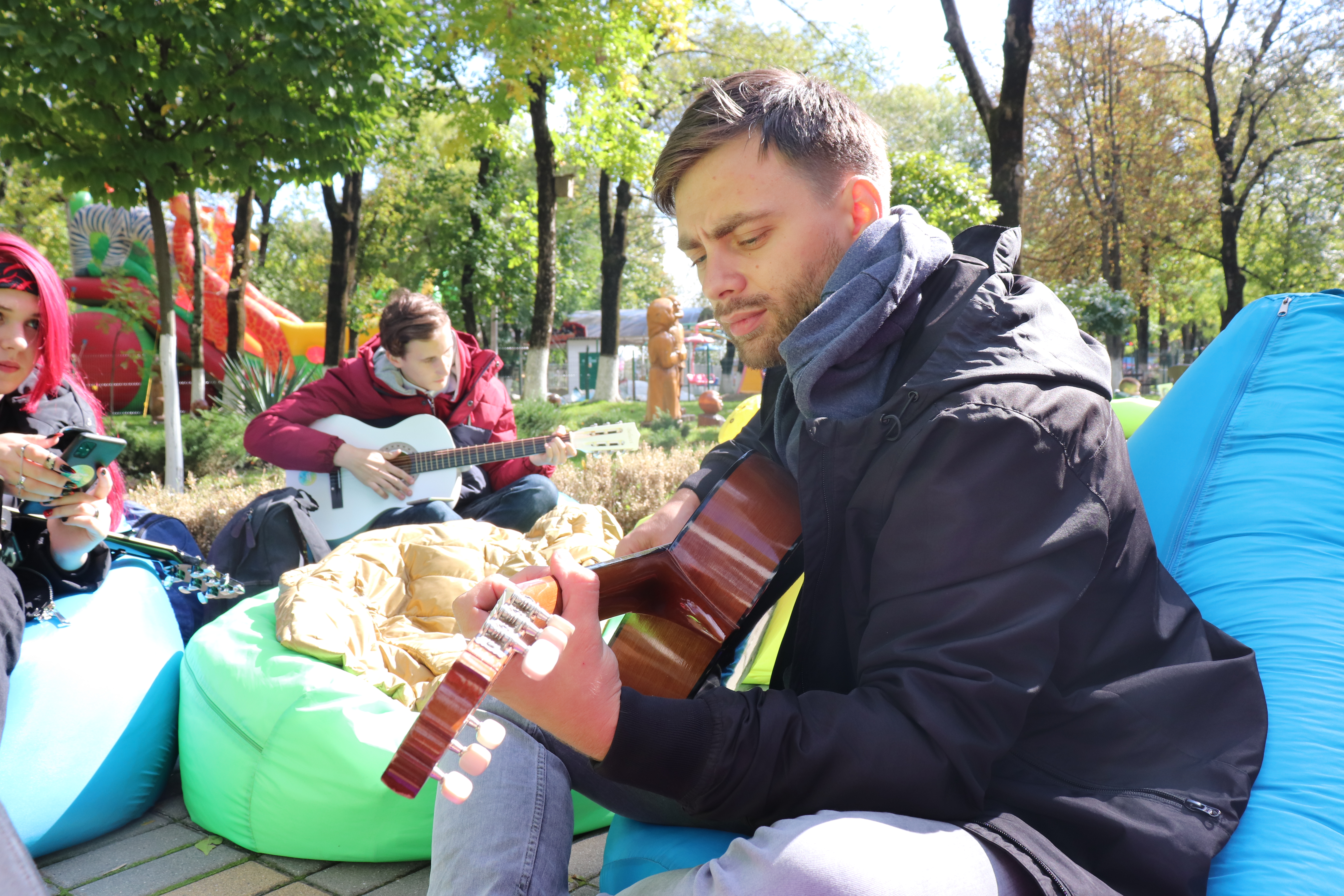 Не смолкала живая музыка в зоне, где молодёжь исполняла песни под гитару. 🎸