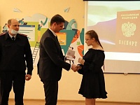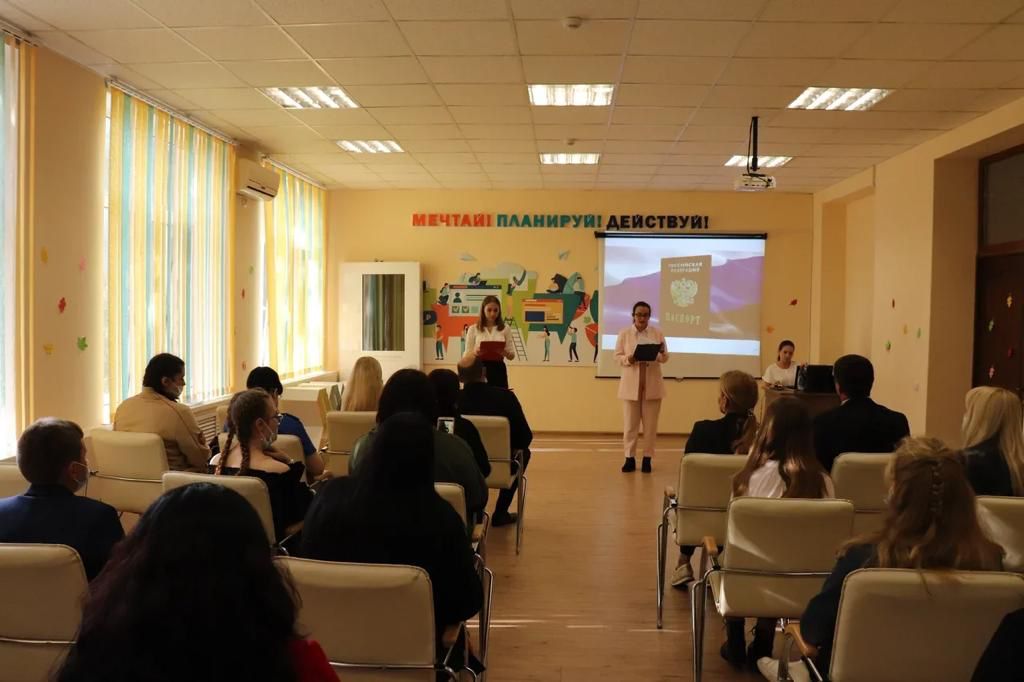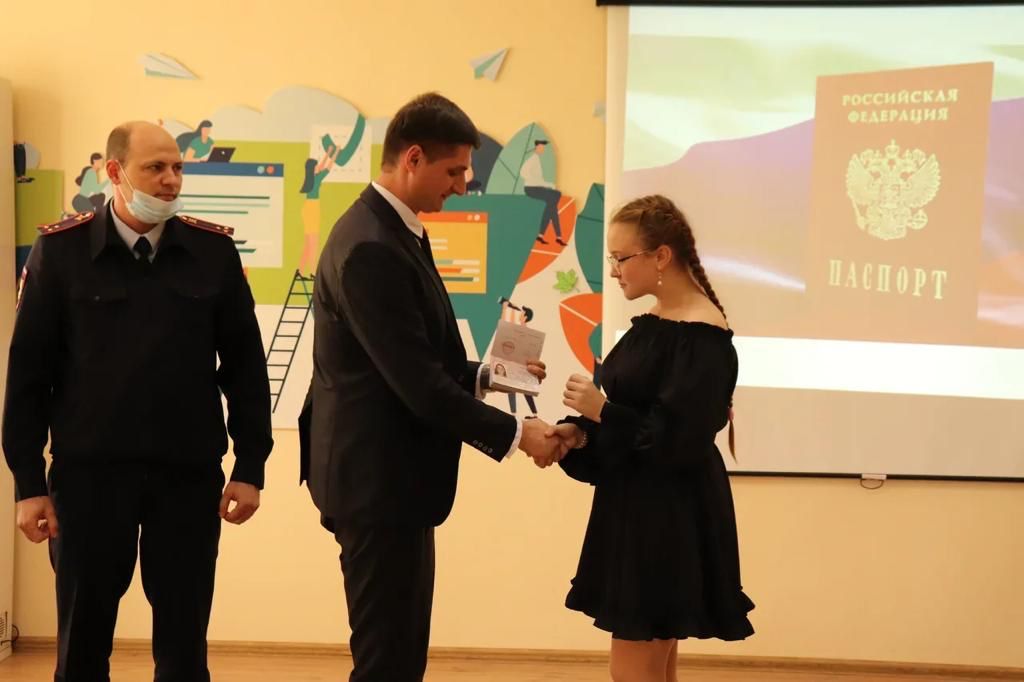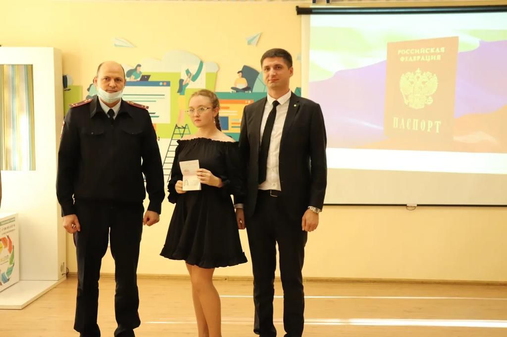 🖇Перед вручением ребята узнали историю происхождения паспорта, также испытали себя на гражданскую зрелость, отвечая на вопросы исторической викторины. Инспектор отдела по вопросам миграции Владислав Александрович Нагорный и специалист-эксперт отдела по вопросам миграции Олеся Ивановна Шевчукова поздравили девушек и юношей и вручили им первые паспорта.