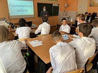 В МОАУСОШ № 8 ИМ. А. Я. ТИМОВА координатор работы с молодежью провела интеллектуальную игру "Парламентские дебаты".