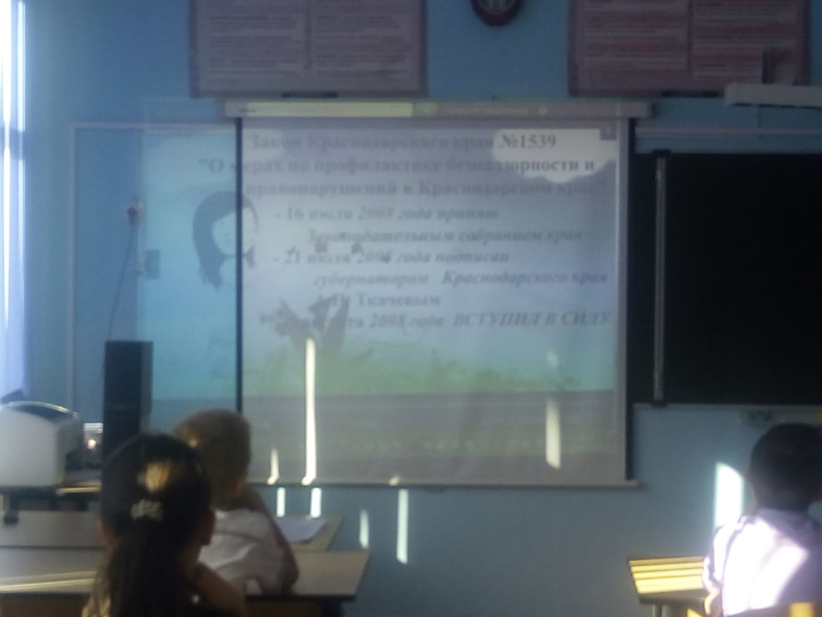 Так же ученикам продемонстрировали видеоролик по закону 1539, который подготовили члены ученического самоуправления .