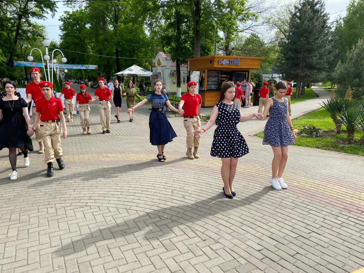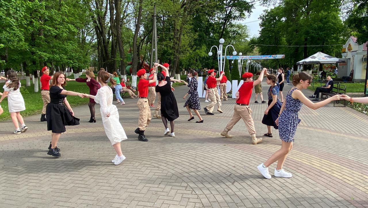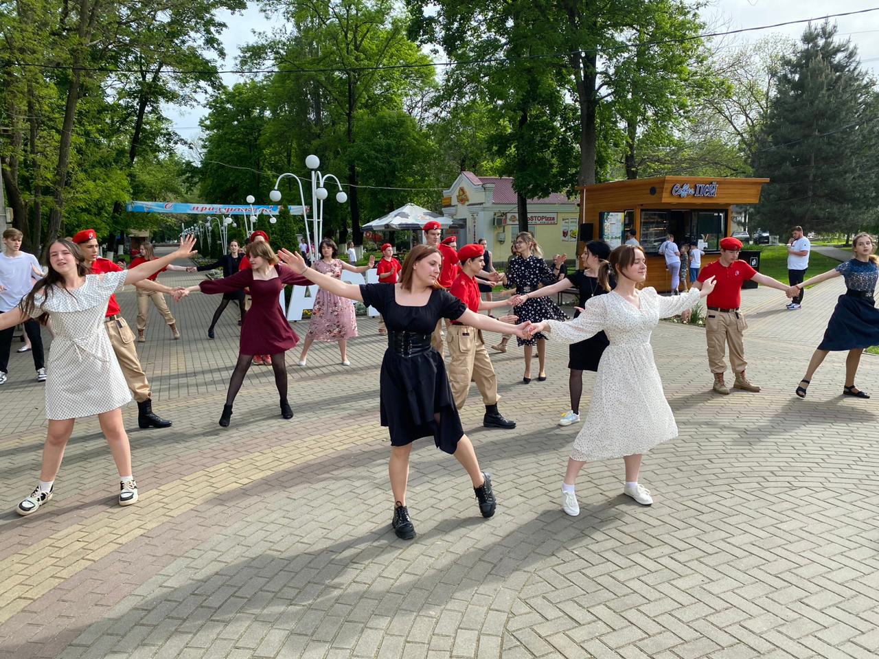 Юноши и девушки, одетые в гимнастерки и платья советских времён, воссоздали настроение «победного мая 1945 года». Участники акции приглашали жителей города танцевать вместе вальс, а также подпевать любимым и таким родным песням военных лет.