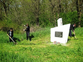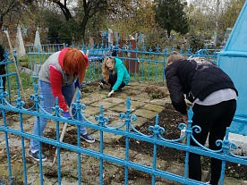 На территории Бесскорбненского сельского поселения Новокубанского района ко Дню народного единства активная молодёжь навела порядок на территории кладбища на Братской могиле.