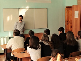 1 декабря, в рамках всероссийской акции "Должен знать!", в актовом зале МОАУСОШ №8 со старшеклассниками встретился специалист по работе с молодежью Прикубанского сельского поселения С.Данилов.